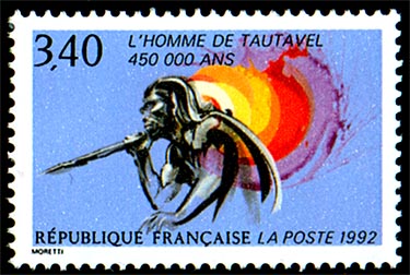 Frankreich 1992 DIe Funde aus der Arago-Höhle bei Tautavel ( 19 km NW of Perpignan), seit 1960 ausgegraben, werden zu den Vor-Neandertalern gestellt.