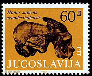 Jugoslawien 1985 Aus Krapina, rund 40 km NW von Zagreb, stammt reichhaltiges Material fossiler Menschen, die als frühe Neandertaler bezeichnet werden. Der Schädel wurde 1905 entdeckt.